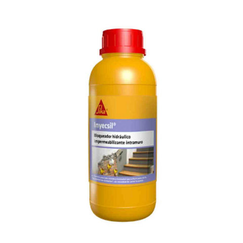 INYECSIL es un impermeabilizante líquido de base mineral que penetra por osmosis en los capilares de los muros formando un gel que en contacto con el agua se cristaliza, transformándose en cristales estables e insolubles con lo que se logra una hidro-repelencia en los capilares de manera que el agua no se adhiere a las paredes de los capilares y no se produce el fenómeno de absorción.