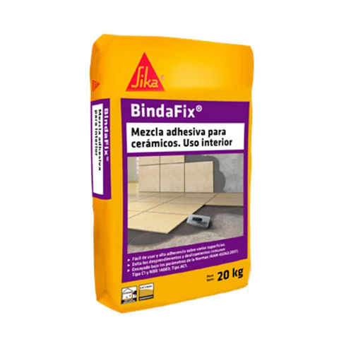 - Cerámicos con dorso plano o con poca rugosidad de dimensiones menores a 20 x 20 cm o 400 cm2: se extiende el adhesivo con llana de 6 x 6 x 6 milímetros de diente (simple encolado), consumo aproximado: 3 kg/m2