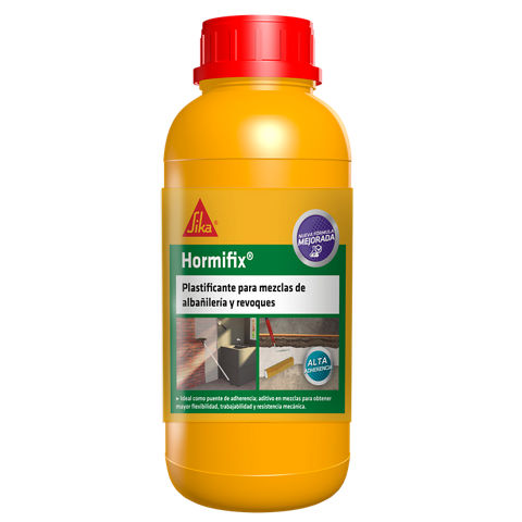 HORMIFIX® es una emulsión adhesiva líquida, a base de polímeros acrílicos. No contiene cloruros ni sustancias nocivas para el cemento ni las armaduras.
