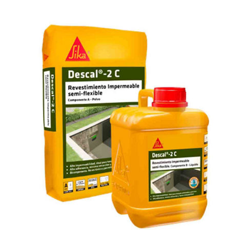 DESCAL-2 C es un revestimiento impermeable, semiflexible, no tóxico, que consta de dos componentes, a base de cemento modificado con polímeros.