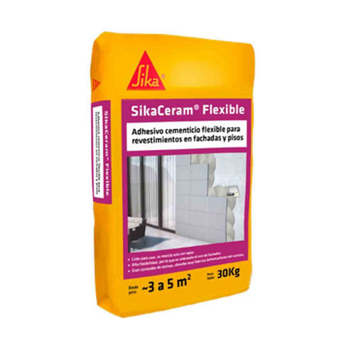 SikaCeram® Flexible es una mezcla cementícia adhesiva impermeable, tixotrópica, de muy buena plasticidad y altas prestaciones, en base a ligantes hidráulicos y arenas de granulometría controlada, con alta adición de polímeros, que le otorgan muy buena flexibilidad. Listo para su uso, solo se le agrega agua.
